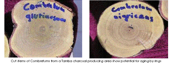 Re-cutting and then examining stumps in a previously-cut area could verify that counting tree rings is accurate for aging trees for charcoal species.  The Mémento Forestier (Centre Technique Forestier Tropical, France 1990 p. 92) states that growth rings are visible on some species of trees in the tropics.  Alegria (1988) found that Combretums in Niger could be aged using tree rings by comparing the number of growth rings with the ages of known stems.  Samples cut in Tambacounda, Senegal, are indicative that the practice could be used in other countries.